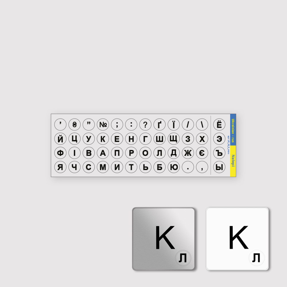 Нано-наклейки на клавіатуру Кирилиця UA | ru d=4 мм прозоре тло / білі символи