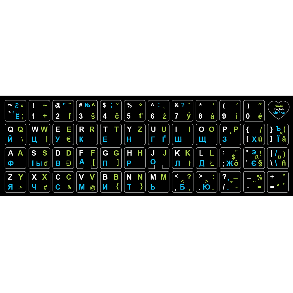 Довговічні наклейки на клавіатуру NALEPI: Словацька / Англійська / Українська / ru