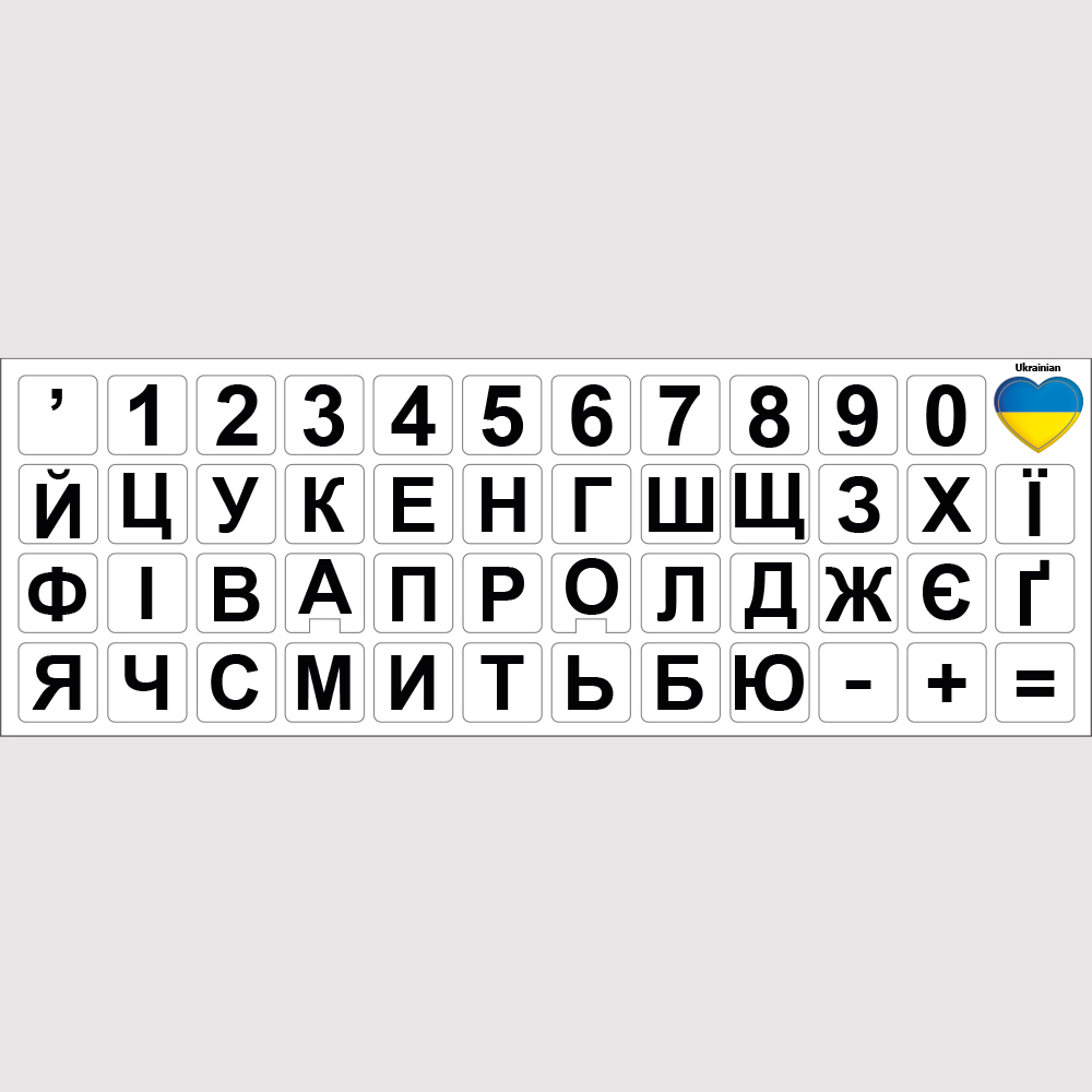 Довговічні наклейки на клавіатуру: Українська великі літери 14х14 мм біле тло NALEPI