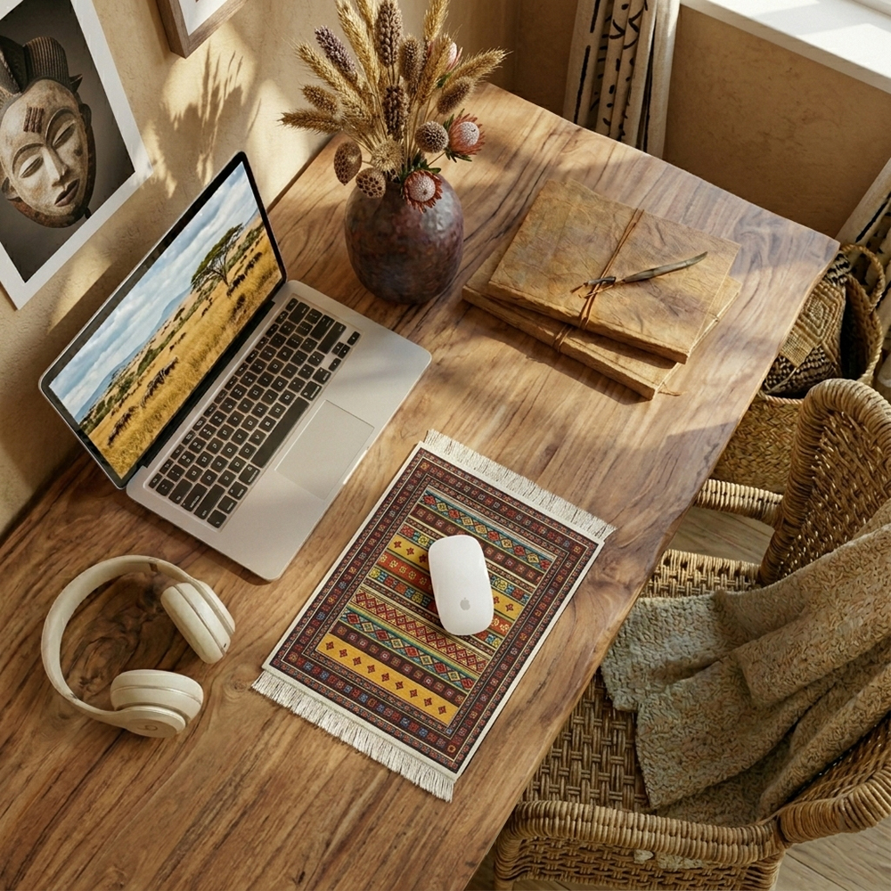 Такий килимок поєднує практичність і стиль, роблячи робоче місце затишним і нестандартним.